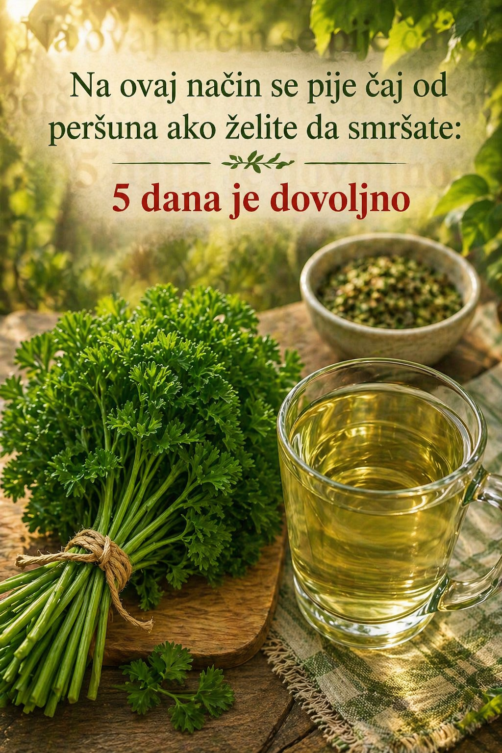 Čaj od peršuna je jednostavan, prirodan i pristupačan napitak koji može biti odličan dodatak zdravom načinu života. Iako nije čudotvorno rješenje, uz pravilnu ishranu i kretanje može pomoći da se osjećate lakše i zdravije.