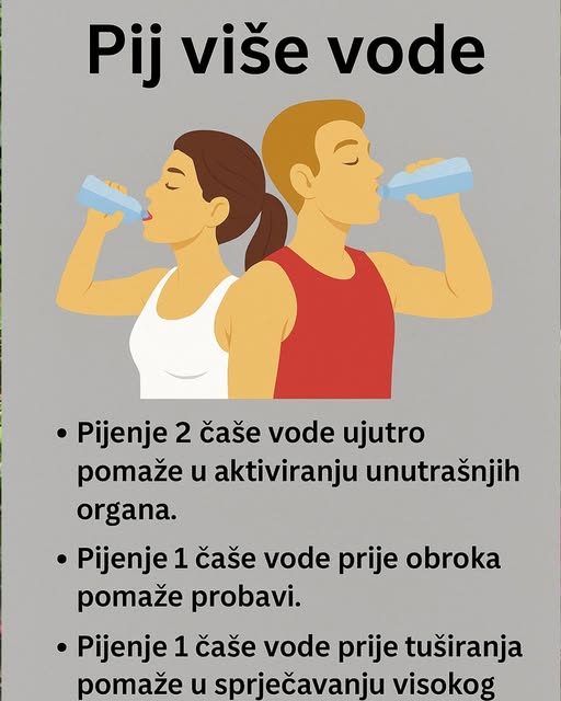 • Dvije čaše vode ujutro pomažu da se aktivira metabolizam i nježno probude unutrašnji organi.