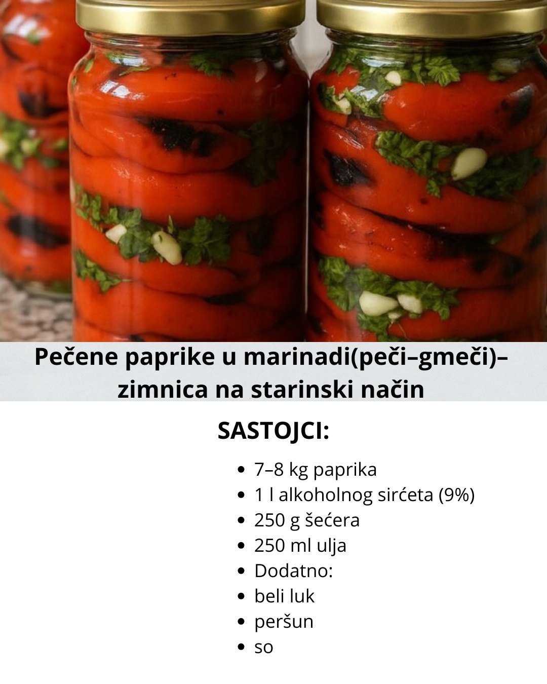 Pečene paprike u marinadi(peči–gmeči)–zimnica na starinski način