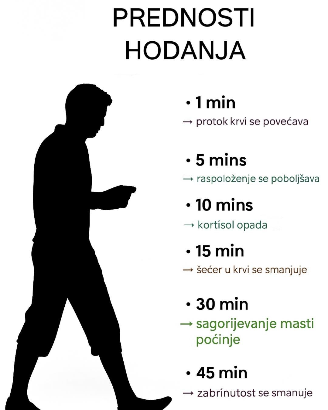 Hodanje je jedna od najjednostavnijih, a istovremeno i najzdravijih aktivnosti koje možete uvrstiti u svoju svakodnevnicu. Ne zahtijeva posebnu opremu niti teretanu, a svaki korak donosi promjene koje pozitivno utiču na vaše tijelo i um. Iako djeluje obično, hodanje je zapravo moćna navika koja već nakon nekoliko minuta pokreće niz korisnih procesa u organizmu. Evo … Read more
