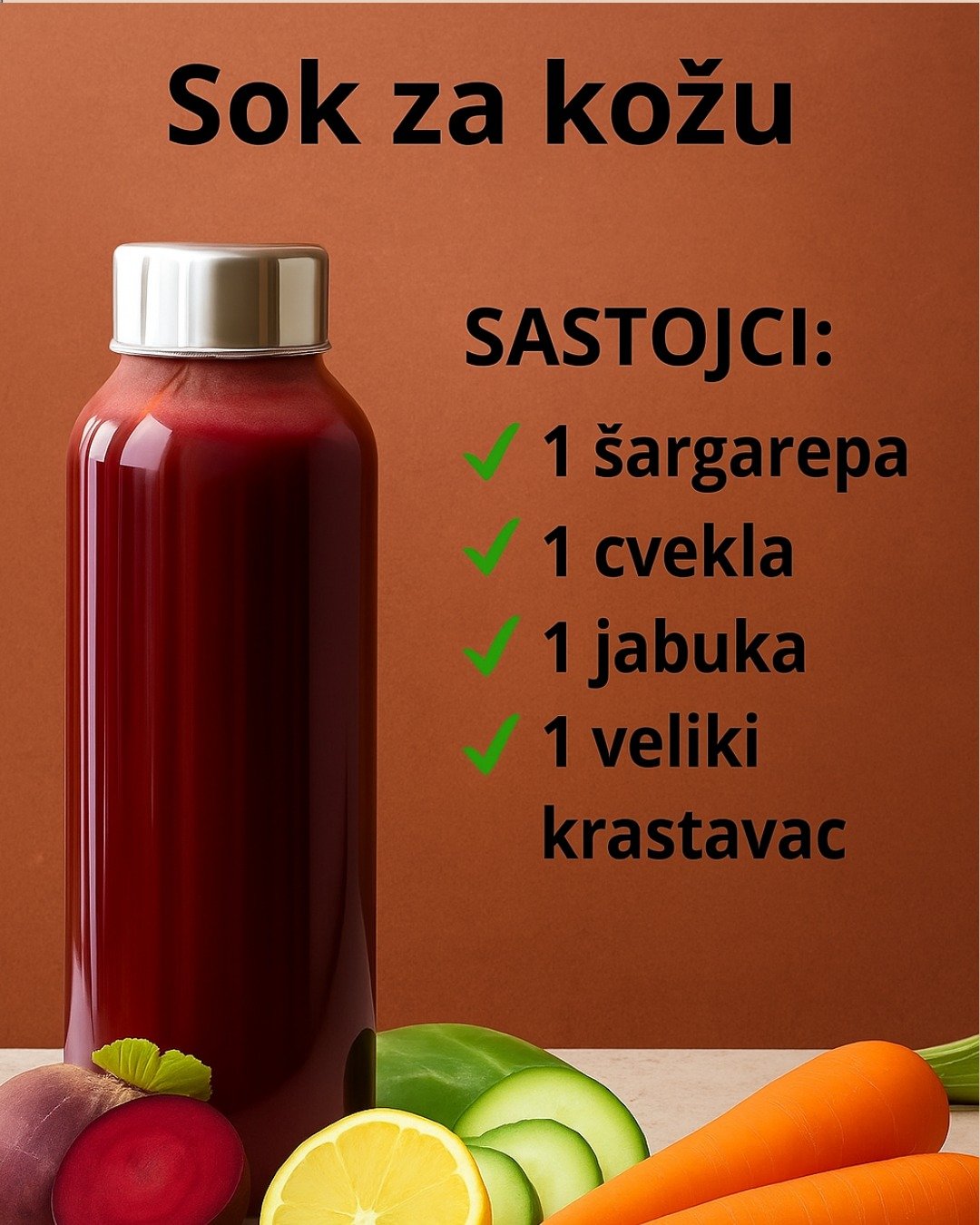 Zdrava i sjajna koža ne dolazi samo od skupih krema ili tretmana – prava ljepota počinje iznutra. Jedan od najefikasnijih načina da poboljšaš izgled svoje kože jeste redovno konzumiranje prirodnog soka bogatog vitaminima, antioksidansima i mineralima. Ovaj sok kombinuje pet moćnih sastojaka koji zajedno hrane tvoju kožu, pročišćavaju organizam i vraćaju prirodni sjaj licu. 🌿 … Read more