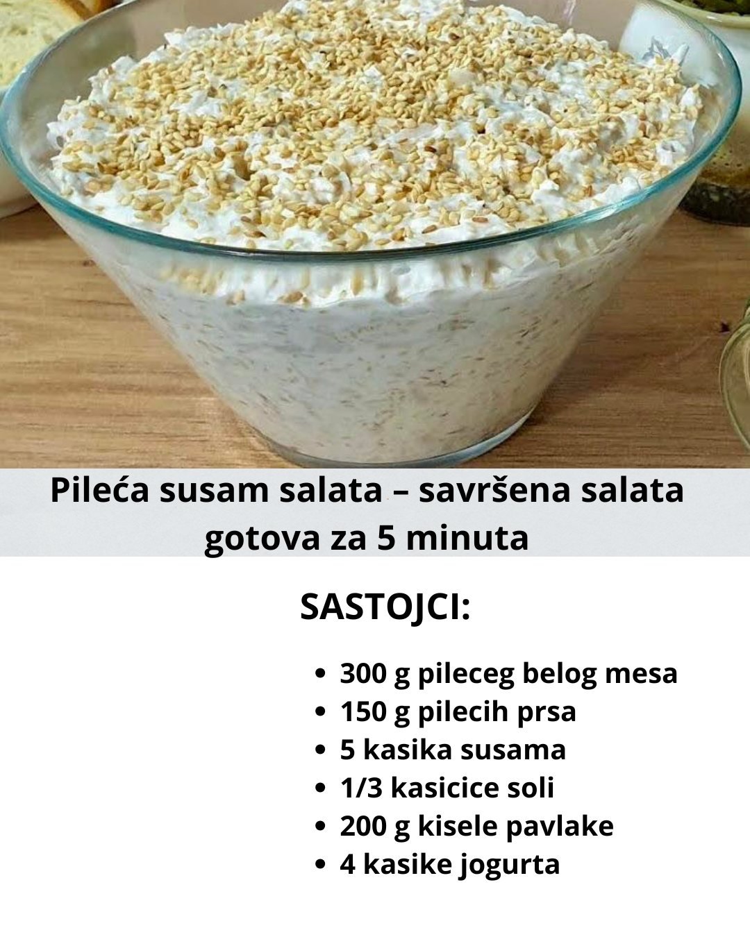 Sastojci – 3 kom krompira – 3 kom mrkve – 3 kom kuvana jaja – 300 gr graška – 6-7 kom krastavčića – 300 gr šunke ili – 1 kom pileći file – so I još – 300 gr majoneza – 200 gr pavalake Priprema Povrće skuhati posebno u slanoj vodi. Ja nekad stavim šunku, … Read more