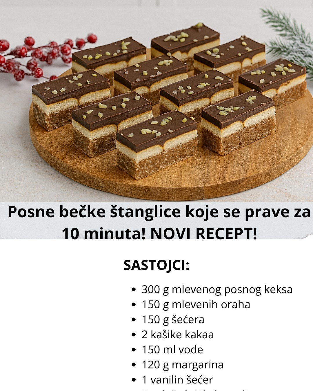 🍬 ČOKOLADNE ŠTANGLICE SA KEKSOM I ROLERIMA Slatki zalogaj koji nestaje za tren! Sastojci: 🔹 Za osnovu: 300 g mlevenog keksa 150 g lomljenog keksa (za hrskavost) 150 g čokoladnih rolera (ili sličnih punjenih štapića) 150 g posnog margarina ili putera 100 g šećera 100 g čokolade za kuvanje 1 dl mleka (ili biljnog napitka … Read more