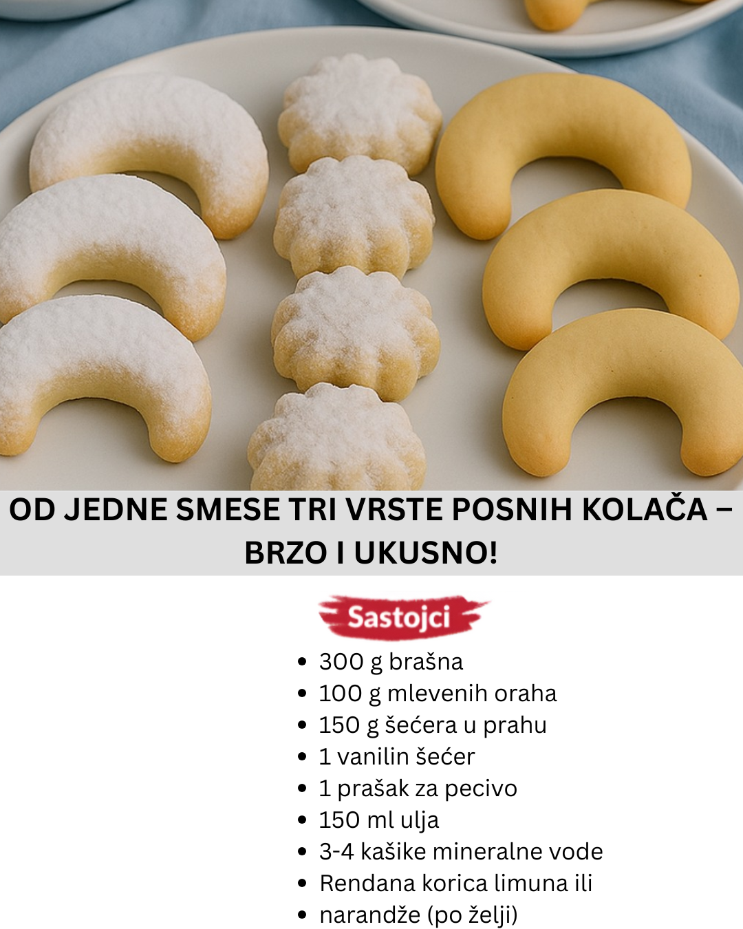 POSNE KUGLICE SA SUVIM ŠLJIVAMA PUNJENE ORASIMA – BEZ PEČENJA Sastojci Za kuglice: 300 g suvih šljiva (mekših, bez koštica) 150 g mlevenog keksa (posnog) 100 g mlevenih oraha 3–4 kašike kakaa 100 g šećera u prahu 80 g margarina (otopljenog) 2–3 kašike soka od narandže ili vode (po potrebi) Za punjenje: polovine oraha (1 … Read more