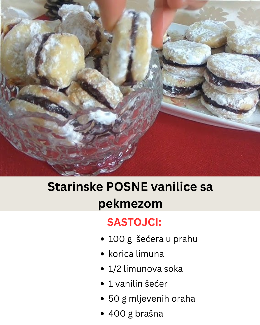 Starinske POSNE vanilice sa pekmezom: Kolačići koji se tope u ustima!