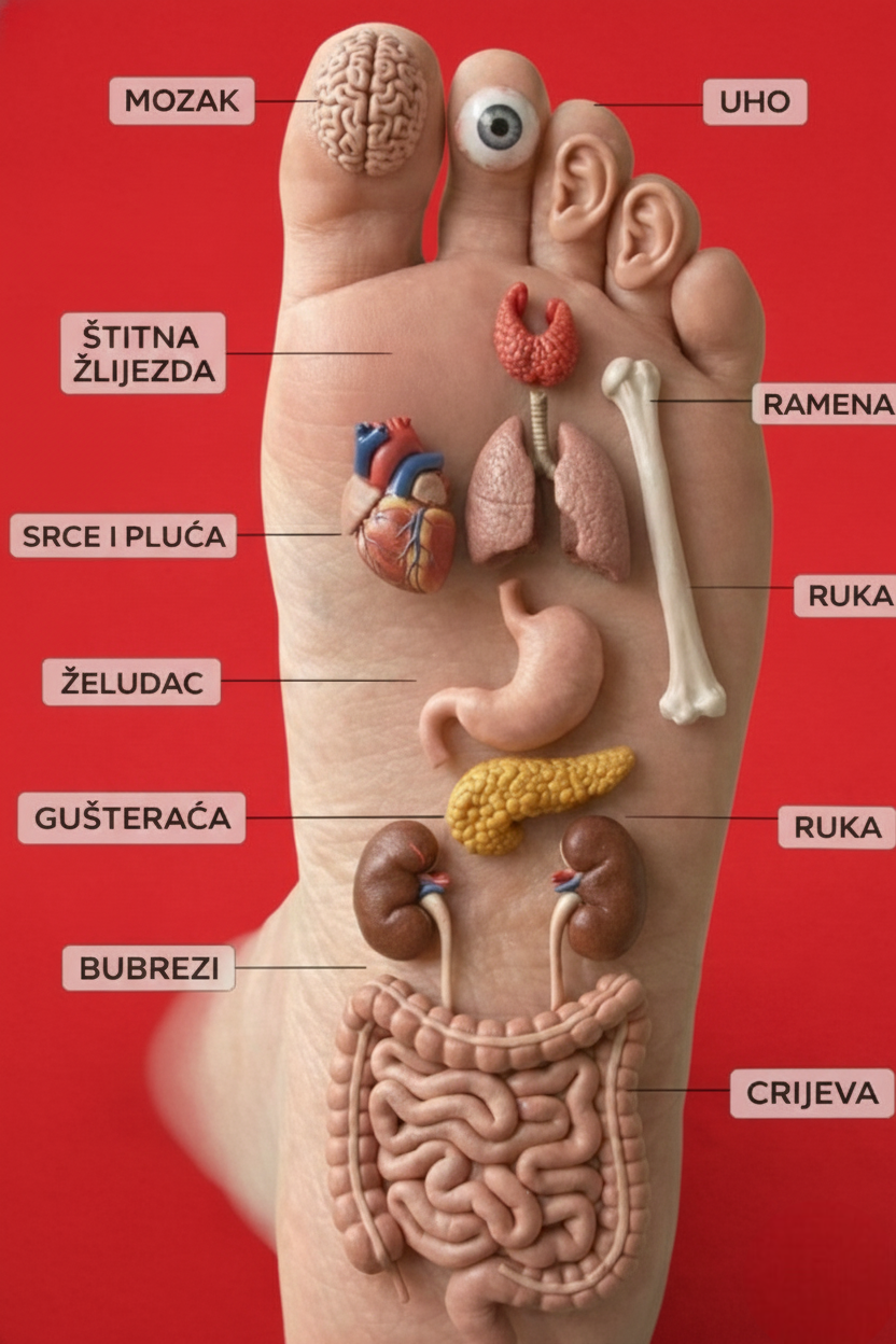 Refleksologija stopala je prirodna metoda koja se koristi već hiljadama godina. Prema ovoj metodi, svaki dio stopala povezan je s određenim organom u tijelu. Pritiskom ili masažom tih tačaka moguće je stimulisati organe, poboljšati cirkulaciju i podržati prirodne procese samoozdravljenja. Na slici je prikazana detaljna mapa organa na stopalu, gdje se jasno vidi povezanost između … Read more