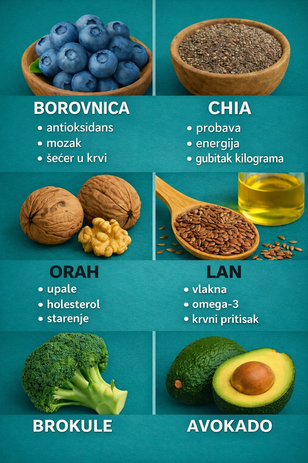 Zdrava ishrana ne mora biti komplikovana. Priroda nam nudi namirnice koje su bogate vitaminima, mineralima, zdravim mastima i antioksidansima. Redovna konzumacija ovih namirnica može doprinijeti boljem zdravlju, većoj energiji i prevenciji mnogih tegoba. U nastavku predstavljamo neke od najpoznatijih prirodnih super-namirnica i njihove koristi. Borovnica – mala bobica za mozak i šećer u krvi Borovnice … Read more