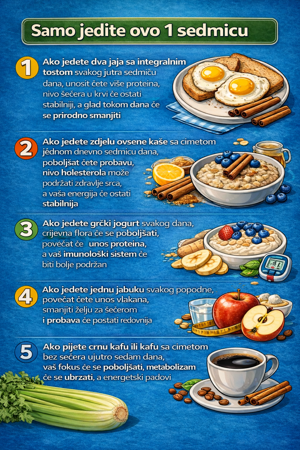 Male promjene u ishrani mogu stvoriti snažne rezultate u vašem cjelokupnom zdravlju. Ova jednostavna 7-dnevna rutina fokusira se na hranu bogatu hranjivim tvarima koja podržava metabolizam, probavu i nivo energije. Evo kako ove svakodnevne namirnice mogu koristiti vašem tijelu: 1. Jaja s tostom od cjelovitih žitarica Početak dana s jajima i tostom od cjelovitih žitarica … Read more