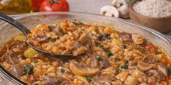 JEFTIN I PREUKUSAN RUČAK: POSNI ĐUVEČ SA ŠAMPINJONIMA KOJI SVI TRAŽE JOŠ! Ovaj posni đuveč sa šampinjonima je savršen izbor kada želite nešto ukusno, zasitno i jeftino, a da se lako priprema. Kombinacija pirinča, povrća i šampinjona daje bogat i pun ukus, dok se sve lepo sjedini tokom pečenja i dobije onu pravu domaću aromu. Idealan je za post, ali i kao lagan ručak za celu porodicu. Za pripremu ovog jela potrebni su sledeći sastojci: 200 grama pirinča, 400 grama šampinjona, 1 veća glavica crnog luka, 2 čena belog luka, 1 šargarepa, 1 paprika (crvena ili zelena), 2 krompira srednje veličine, 2 paradajza ili 200 mililitara paradajz soka, 4 supene kašike ulja, 500 mililitara vode ili povrtnog bujona, 1 kašičica soli, pola kašičice bibera, 1 kašičica mlevene paprike i malo peršuna po želji. Priprema počinje tako što se na zagrejanom ulju proprži sitno seckan crni luk dok ne postane staklast. Zatim se dodaje beli luk i kratko proprži, pa se ubacuje rendana šargarepa i seckana paprika. Sve se zajedno dinsta nekoliko minuta dok povrće ne omekša i ne pusti miris. Nakon toga dodaju se isečeni šampinjoni i kratko se dinstaju dok ne puste vodu i blago se zapeku. Zatim se ubacuju na kockice isečeni krompir i opran pirinač, pa se sve dobro promeša kako bi se ukusi sjedinili. Dodaje se paradajz ili paradajz sok, začini (so, biber i mlevena paprika), pa se naliva voda ili bujon. Smesa se prebacuje u vatrostalnu posudu (ako već nije u njoj) i ravnomerno rasporedi. Đuveč se peče u unapred zagrejanoj rerni na 180 stepeni oko 40 minuta, dok pirinač ne upije svu tečnost i jelo ne dobije lepu, blago zapečenu koricu odozgo. Po potrebi, tokom pečenja možete dodati još malo vode ako vidite da je pirinač još tvrd. Kada se izvadi iz rerne, ostavi se nekoliko minuta da odmori, pa se pospe sitno seckanim peršunom. Rezultat je sočno, mirisno i izuzetno ukusno jelo koje se jede kašikom i koje će svi tražiti još. Ovaj đuveč je pravi dokaz da jednostavni sastojci mogu napraviti savršen obrok – jeftin, zasitan i pun domaćeg ukusa.