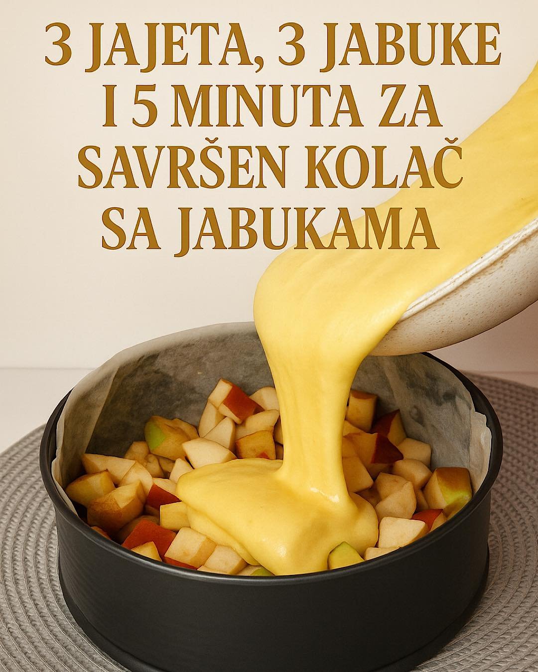 3 jajeta, 3 jabuke i 5 minuta za savršen kolač sa jabukama svaki dan! Brza poslastica.