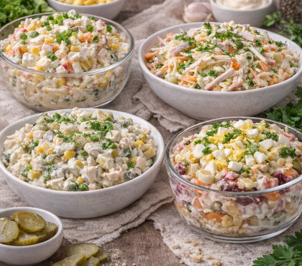 Ako tražite brze salate za praznike, ove kremaste salate sa majonezom su savršen izbor. Jednostavne su za pripremu, zasitne i idealne za svaku trpezu.