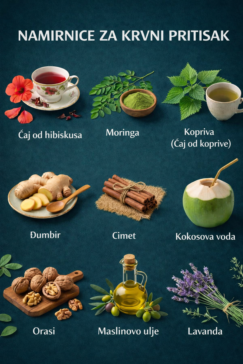 Čaj od hibiskusa: Čaj od hibiskusa može pomoći u održavanju zdravog krvnog pritiska tako što podstiče opuštanje krvnih sudova i djeluje kao prirodni diuretik.