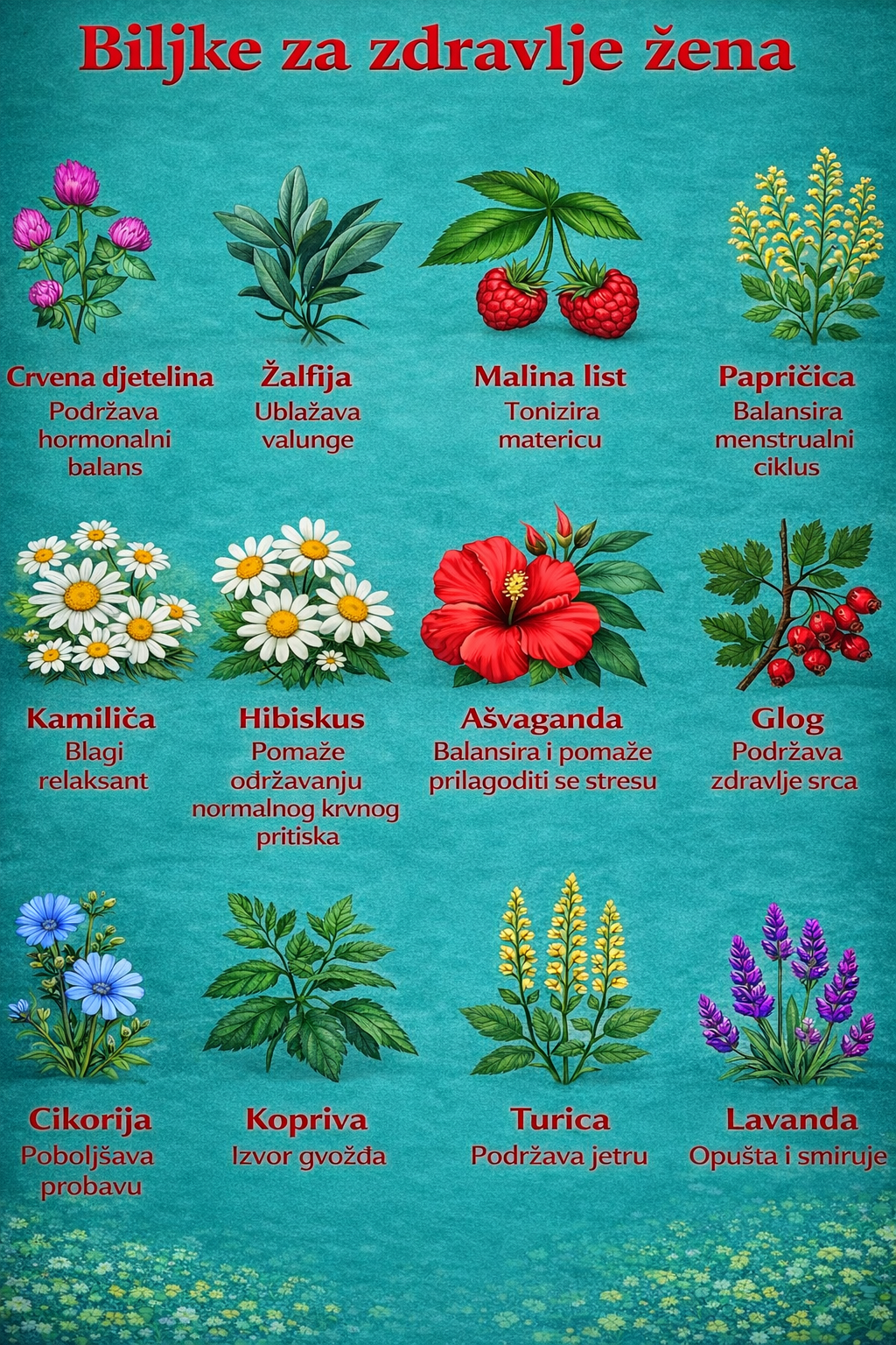 Ove biljke ističu snažnu vezu između prirode i ženskog zdravlja. Iako nisu zamjena za medicinski tretman, mogu biti vrijedan dio uravnoteženog načina života usmjerenog na ishranu, opuštanje i holističku njegu. Uvijek se konsultujte sa zdravstvenim radnikom prije redovne upotrebe biljnih lijekova.