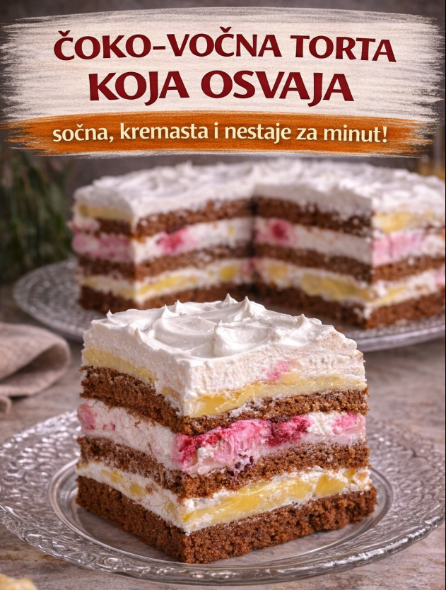 ✨ Rezultat je raskošna, višeslojna voćna torta koja izgleda impresivno na preseku i osvaja već na prvi zalogaj.