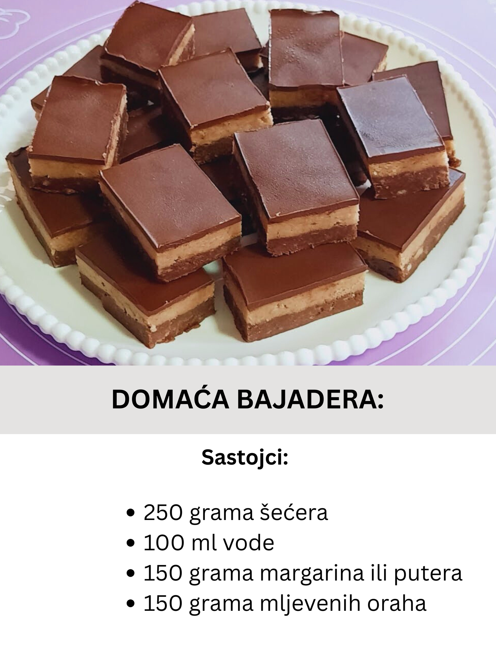 - Dekoracija: Glazuru možete ukrasiti seckanim orasima, čokoladnim mrvicama ili čak suvim voćem po želji.