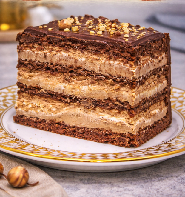 Ova torta je prava čokoladna fantazija – slojevita, bogata i kremasta, sa savršenim spojem čokolade, lešnika i finog fila koji se topi u ustima. Idealna je za slavlje, ali i kada želiš da napraviš nešto što će svi pamtiti.