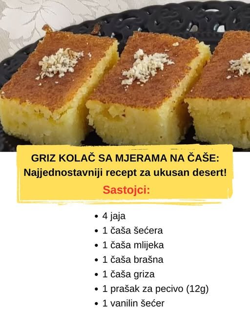 Griz kolač – najjednostavniji recept za ukusan desert! Mjera na čaše.