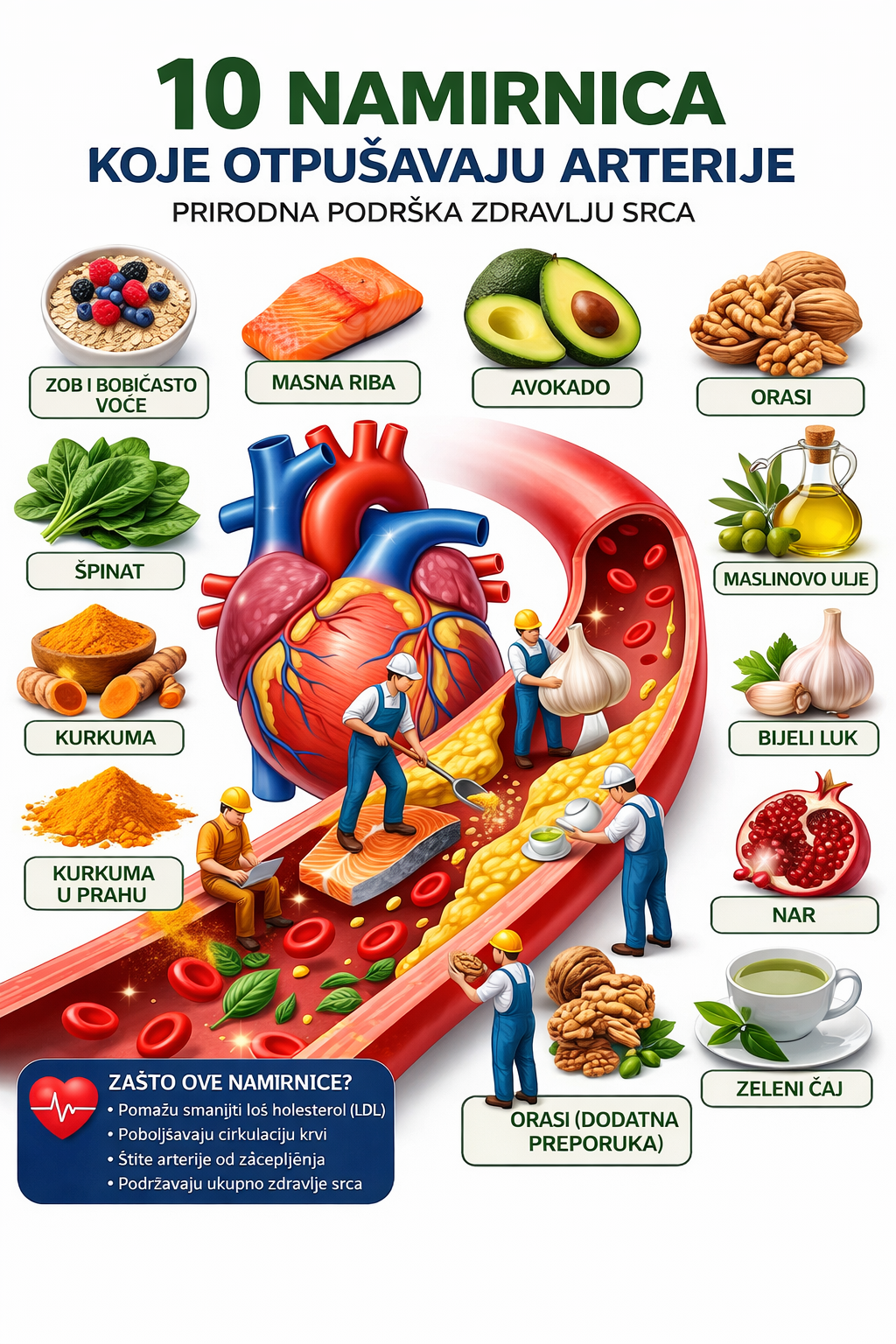 Vaše arterije su vitalne autoputeve vašeg tijela odgovorne za dostavljanje krvi bogate kisikom do svakog organa. Međutim, vremenom faktori poput loše prehrane mogu uzrokovati nakupljanje plaka poznatog kao ateroskleroza, koja djeluje poput zahrđale cijevi koja ograničava protok i povećava pritisak na srce. Ilustracija vizualizira kako specifična funkcionalna hrana može djelovati kao biološka posada za čišćenje kako bi sigurno razgradila ove naslage i obnovila nesmetanu cirkulaciju.
