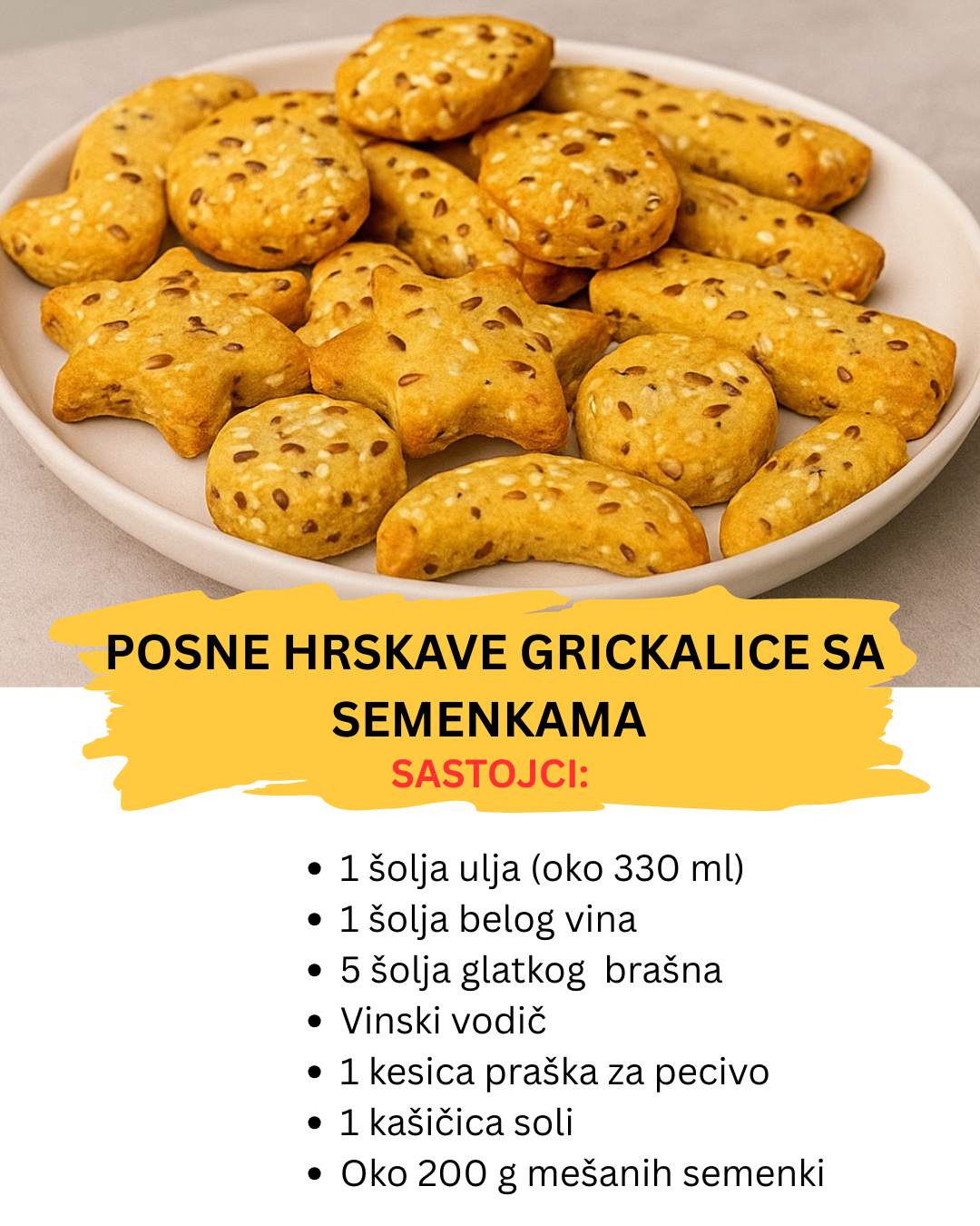Ove slane poslastice odlično kombinuju aromu vina, neutralni ukus testa i bogatstvo semenki koje daju posebnu teksturu i miris. Sjajne su i za pakovanje, ponesite ih na posao, u školu ili kao poklon domaćina.