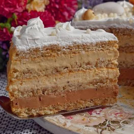 Ovo je jedna savršena torta za sve prilike sa kojom nema greške. Prelepe meke korice sa orasima i tri bogata krema različitog ukusa. Pomalo zaboravljena u moru brzih poslastica – Interkontinental torta.