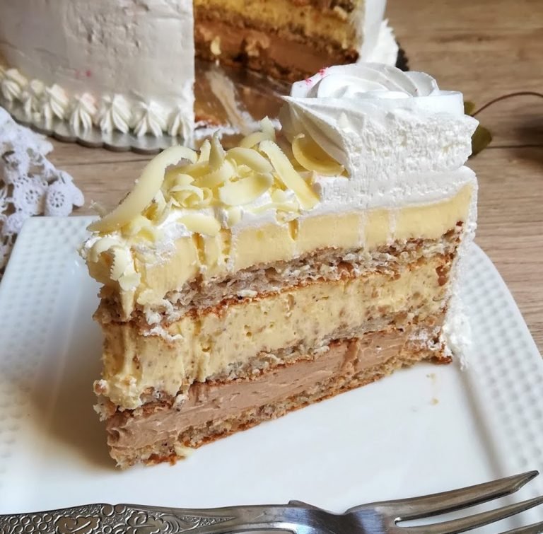 2. Rernu uključite na 200 stepeni. Mutite 4 belanca dok ne postanu čvrsta na dodir, postepeno dodajte 4 kašike šećera i mutite još malo. Na kraju umešajte varjačom 6 kašika mlevenog lešnika, kašiku brašna i na vrh kašičice praška za pecivo. Kalup (okrugli 24cm) obložite pek papirom, premažite maslacem i pospite brašnom i izručite smesu. Pecite 15 minuta na 200 stepeni. Isto ponoviti još 2x, treba da dobijete 3 kore. Ostavite da se ohladi pa tek onda odvojite od pek papira.