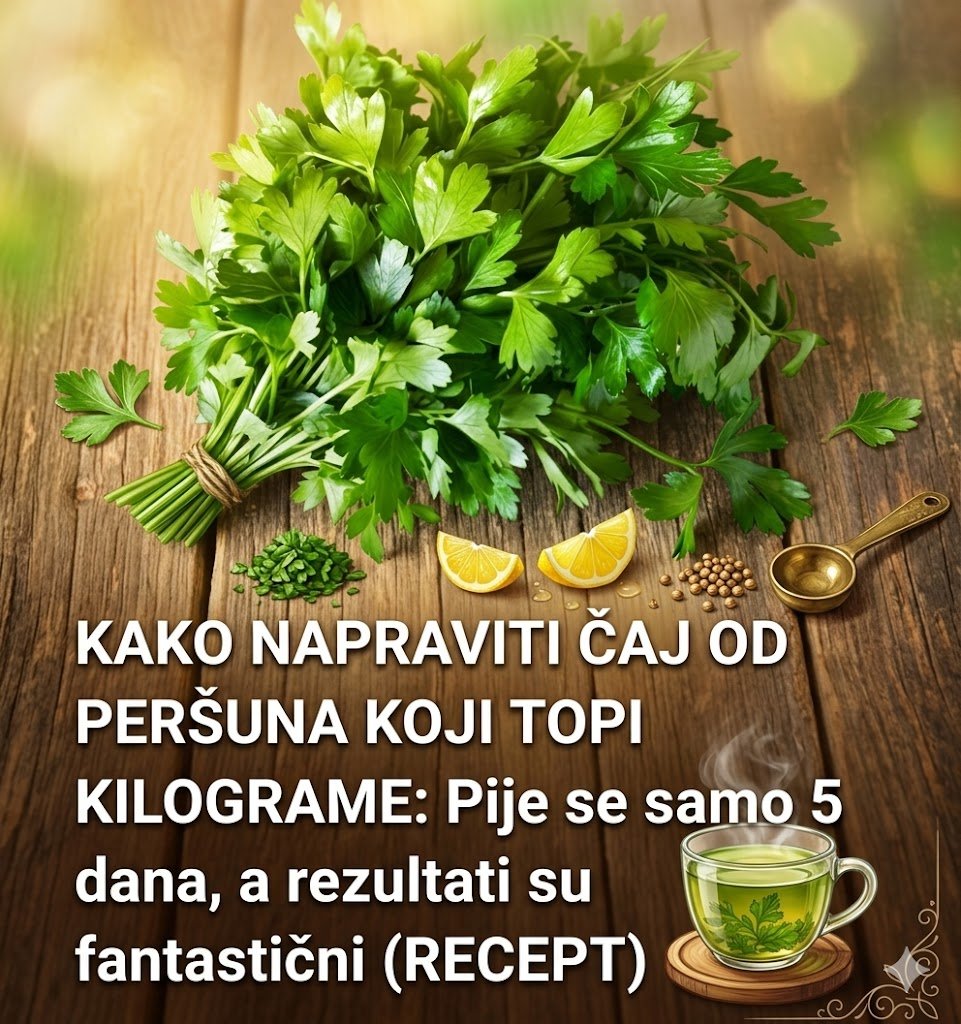 U vrelu, ključalu vodu, dodajte šaku sitno sjeckanog svježeg peršuna. Vodu sklonite sa ringle i poklopite posudu. Ostavite da se čaj prohladi.