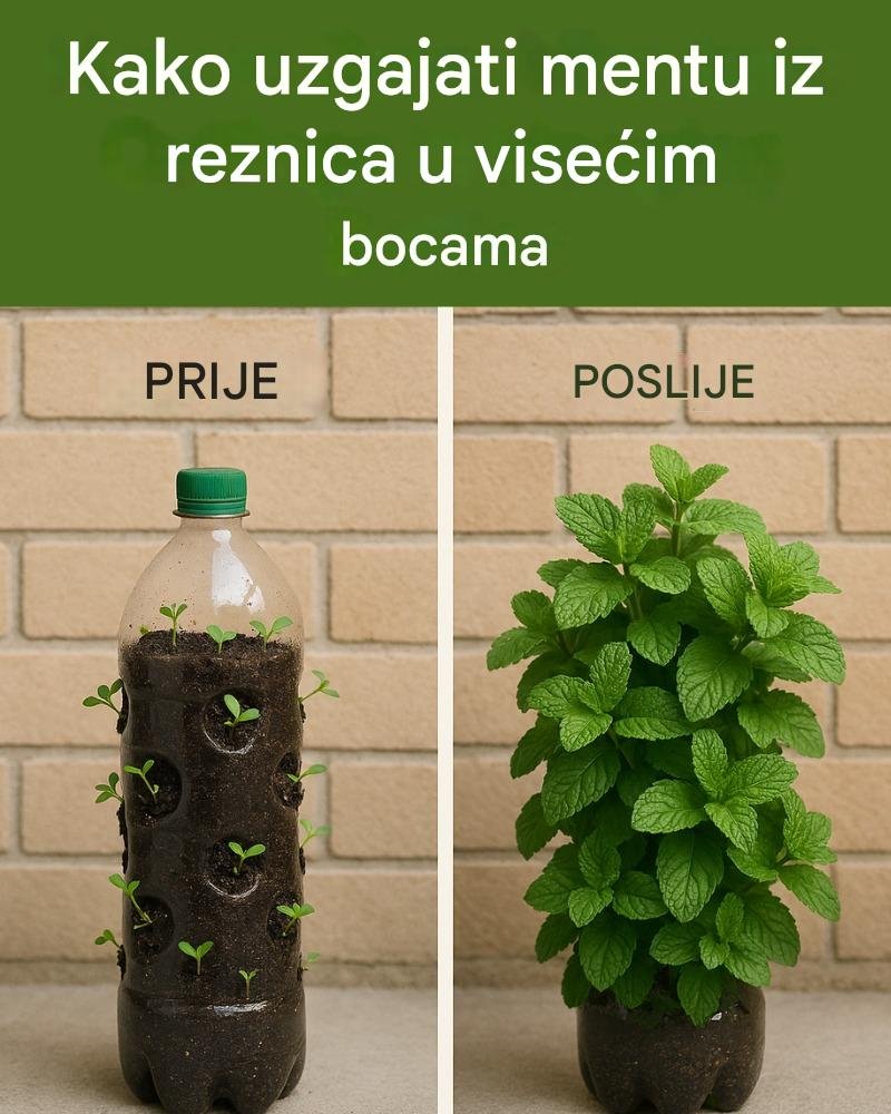 Kada vam život da plastične flaše – posadite mentu u njima! Zaista. Ovaj pametan trik u baštovanstvu omogućava vam da uzgojite bujnu, mirisnu mentu iz reznica – bez zemlje, bez saksija i bez muke. Sve što vam je potrebno jesu par svakodnevnih stvari i sunčano mesto na koje možete okačiti svoju mini baštu.