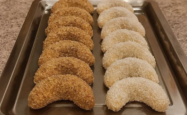 Kada su kiflice upile sirup, pažljivo ih izvadite i uvaljajte po želji — u kokos, mleveni keks, orahe ili sitni šećer.