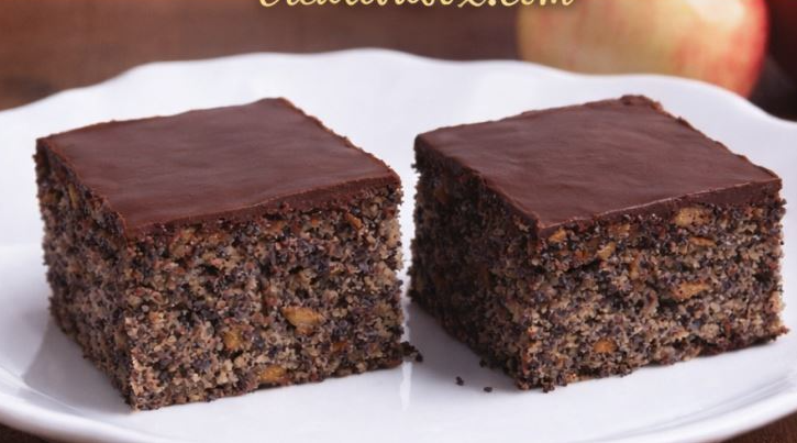 Kolač sa makom i jabukama – preliven čokoladnom glazurom