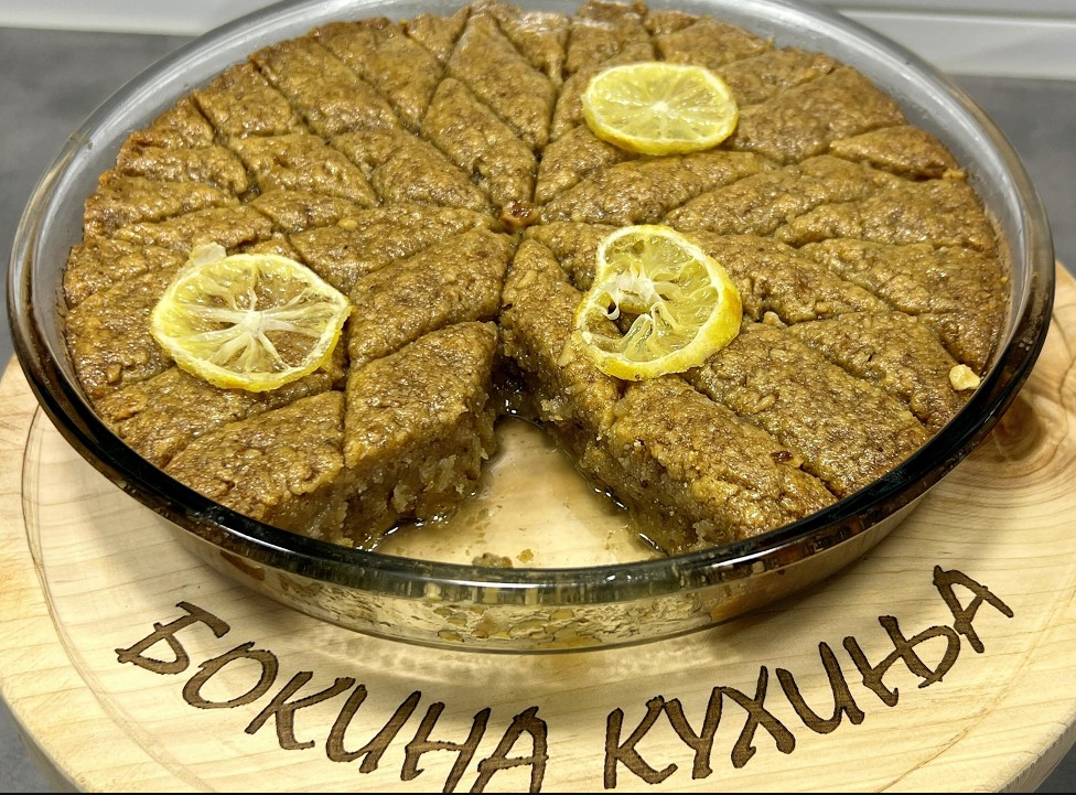 Čim izvadite vruć kolač iz rerne, prelijte ga mlakim sirupom. Ostavite da dobro upije sebet i potpuno se ohladi. Tako će lažna baklava postati mekana, sočna i puna ukusa.