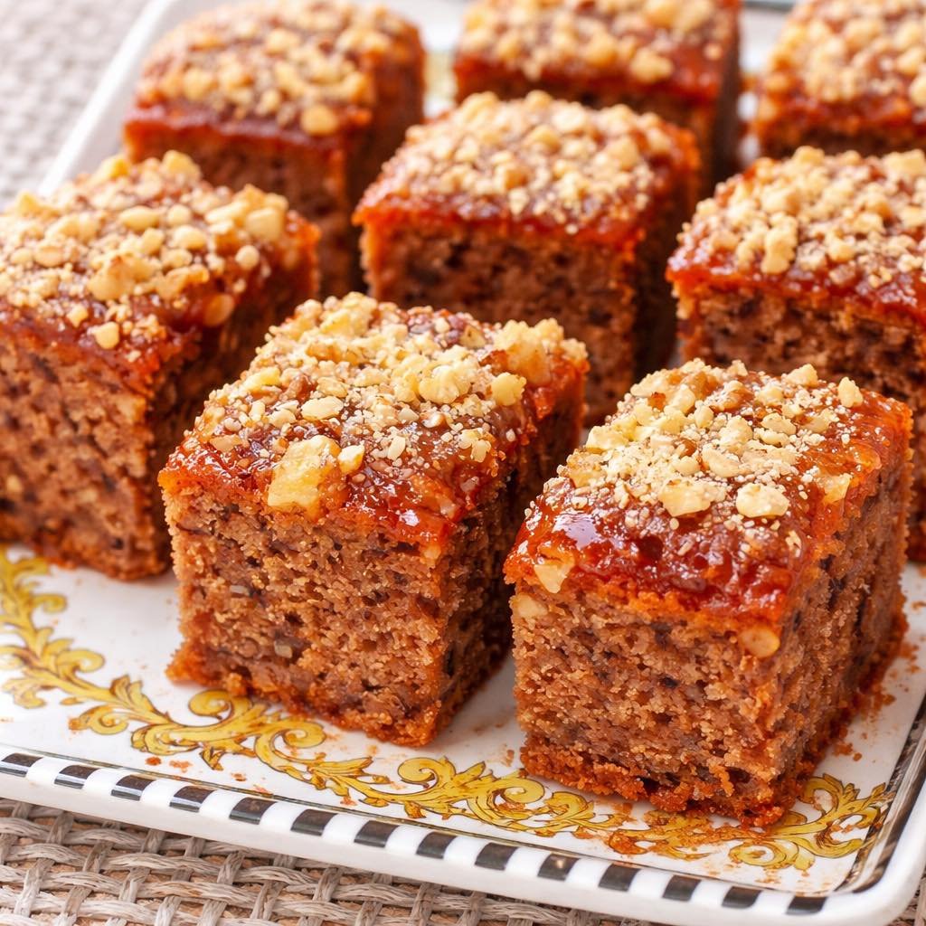 Način pripreme: Sipati mlaku vodu u vanglicu, dodati prvo marmeladu i šećer i žicom izmutiti. Dodati brašno sa praškom za pecivo. Zatim dodati orahe mlevene i seckane, cimet. Sve dobro žicom izjednačiti, po savetu Bakine kuhinje. Testo je ređe. Sipati u pleh 35×28 obložen pek papirom.
