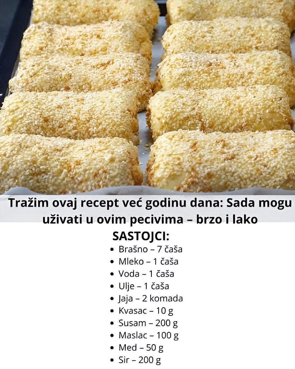 * Pecite u prethodno zagrejanoj rerni na 180-200°C oko 15-20 minuta, dok ne dobiju lepu zlatno-žutu boju.