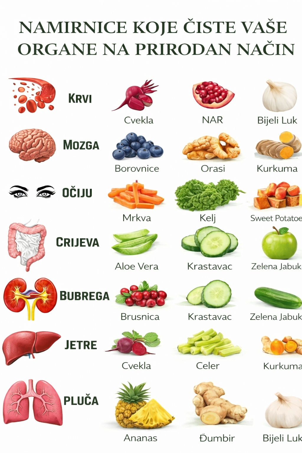 Održavanje zdravog tijela počinje hranjenjem vaših organa. Priroda pruža moćne namirnice koje pomažu u detoksikaciji, zaštiti i poboljšanju funkcije vitalnih organa poput jetre, bubrega, mozga i pluća. Dodavanjem ovih prirodnih namirnica u vašu svakodnevnu prehranu možete podržati cjelokupno zdravlje i spriječiti mnoge uobičajene bolesti.