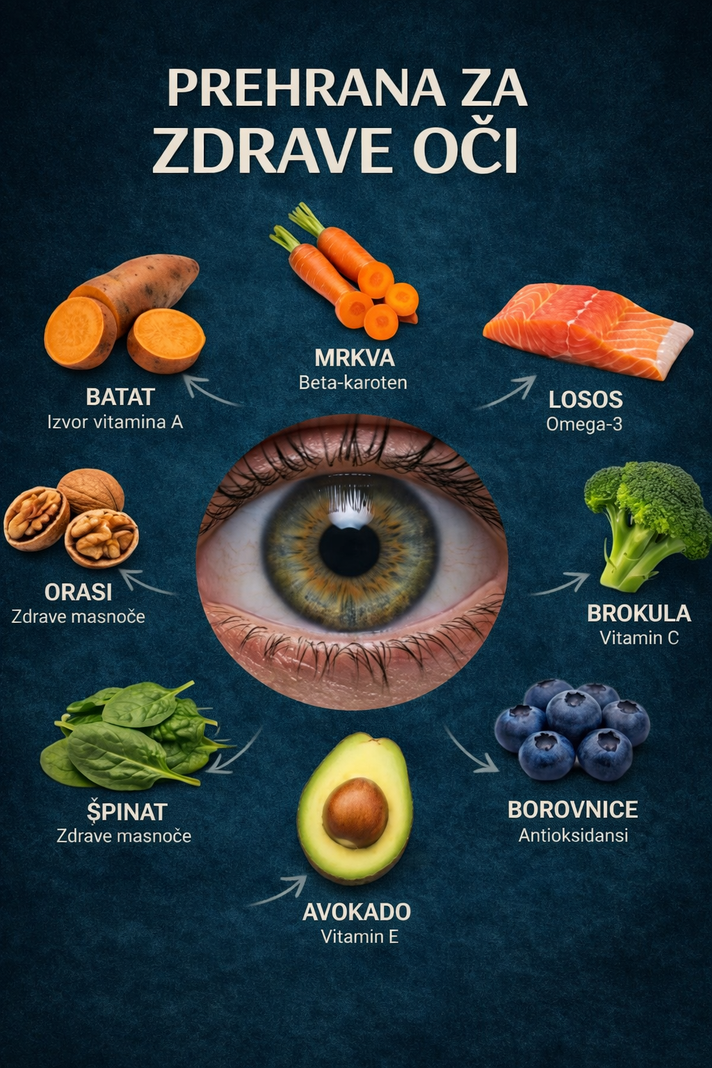 Mrkva i slatki krompir bogati su beta-karotenom i vitaminom A, koji su neophodni za održavanje dobrog vida. Ovi nutrijenti pomažu u poboljšanju noćnog vida i štite oči od suhoće.