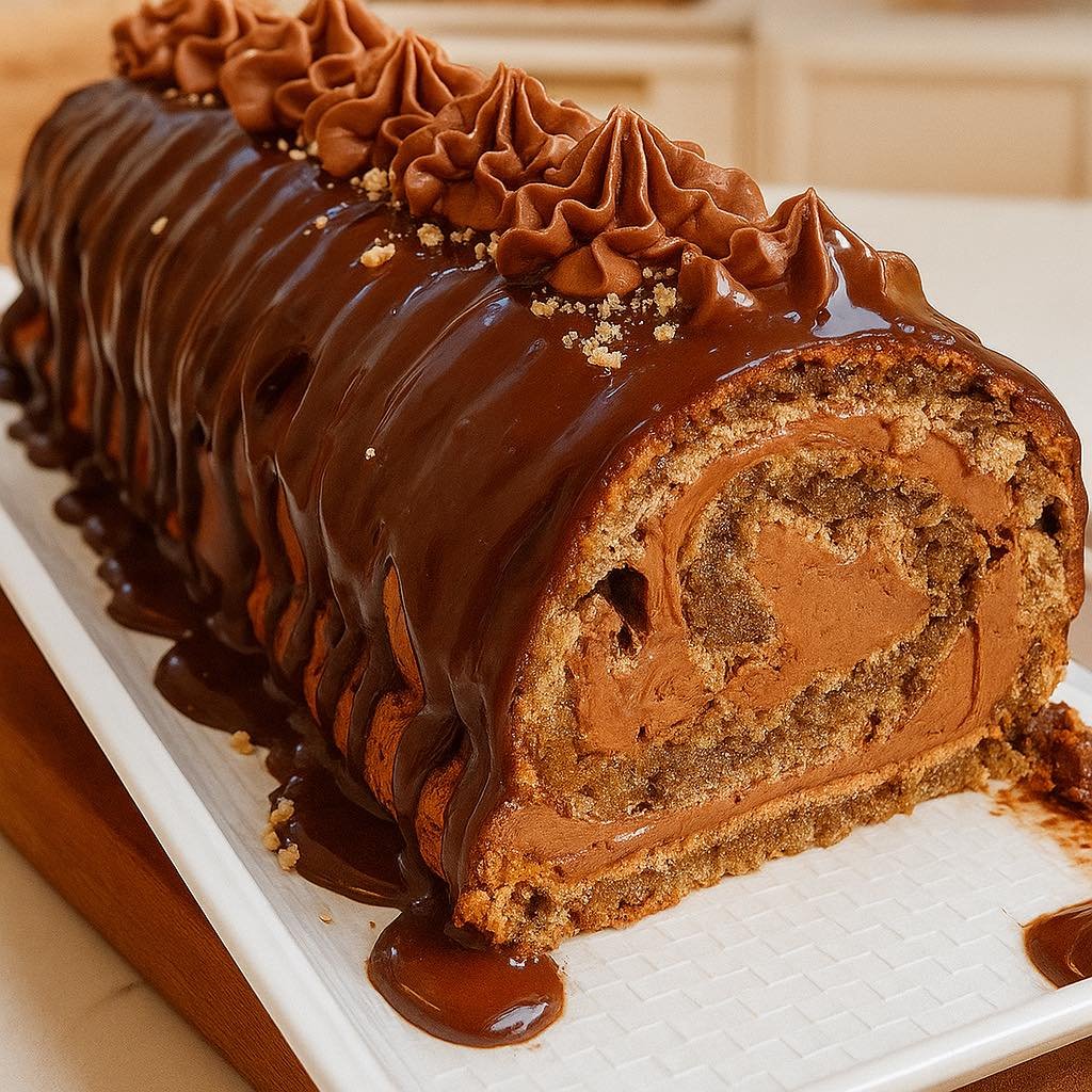 Sjediniti čokoladu I slatku pavlaku i istopiti čokoladu u slatkoj pavlaci na pari. Preliti rolat a ostatak ohladiti I umutiti a potom rolat ukrasiti.