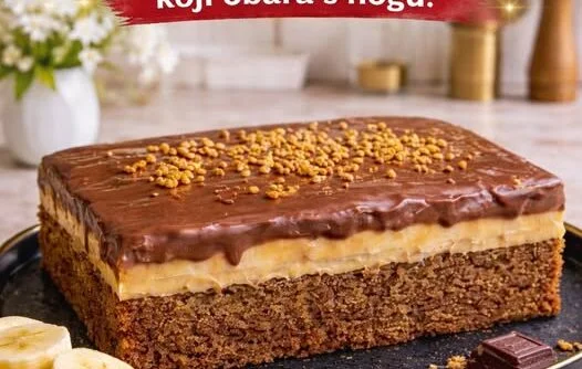 Ovaj kolač je postao pravi hit jer kombinuje mekanu, sočnu podlogu od banana sa bogatim kremom i čokoladnom glazurom koja daje završni, neodoljivi sloj. Idealan je za svaku priliku – od brzog porodičnog deserta do posluženja kada dolaze gosti, jer izgleda raskošno, a pravi se bez komplikacija.