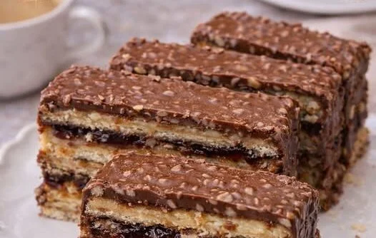 Kada se ohladi, secite na kocke ili štangle kao na slici. Svaki zalogaj donosi savršen balans mekanog keksa, kremastog fila i čokoladne završnice – upravo zato ovaj desert važi za jedan od najukusnijih domaćih kolača koji uspeva baš svima!