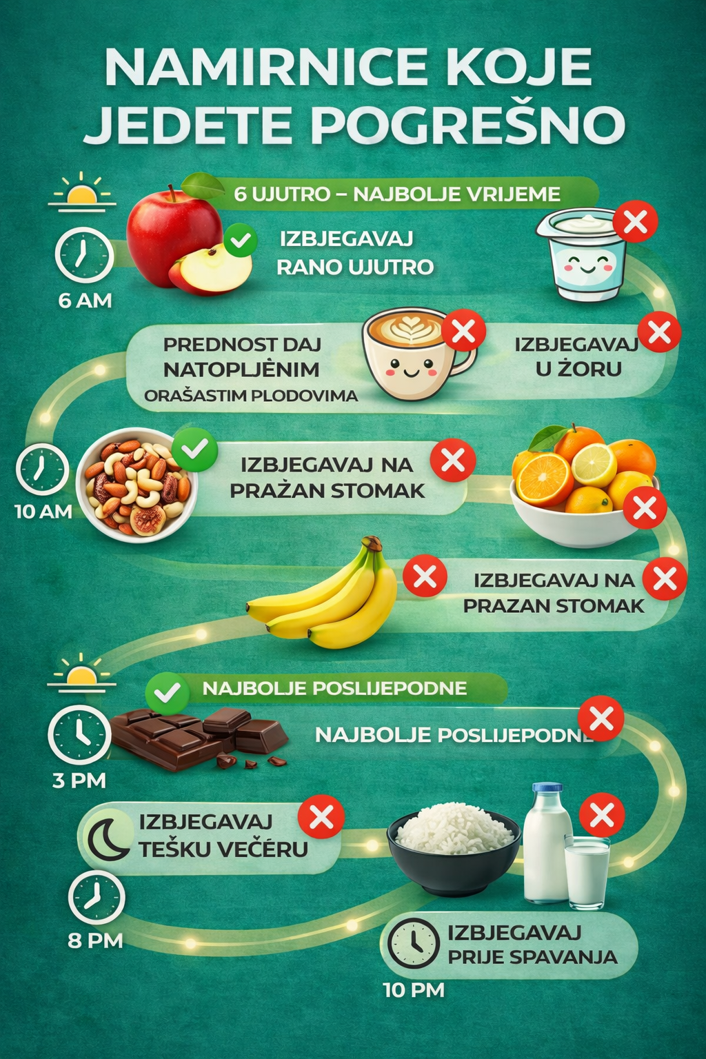 Pravilno vrijeme konzumacije hrane jednako je važno kao i izbor namirnica. Ako obratite pažnju na to kada jedete određene namirnice, možete poboljšati probavu, nivo energije i kvalitet sna.