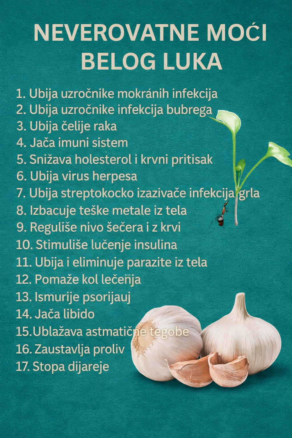 Bijeli luk jeste izuzetno zdrava namirnica i može doprinijeti jačanju organizma, ali tvrdnje da „ubija 17 bolesti“ ili „liječi rak“ nisu medicinski potvrđene. Najbolji efekat daje kada se koristi kao dio uravnotežene ishrane i zdravog načina života.