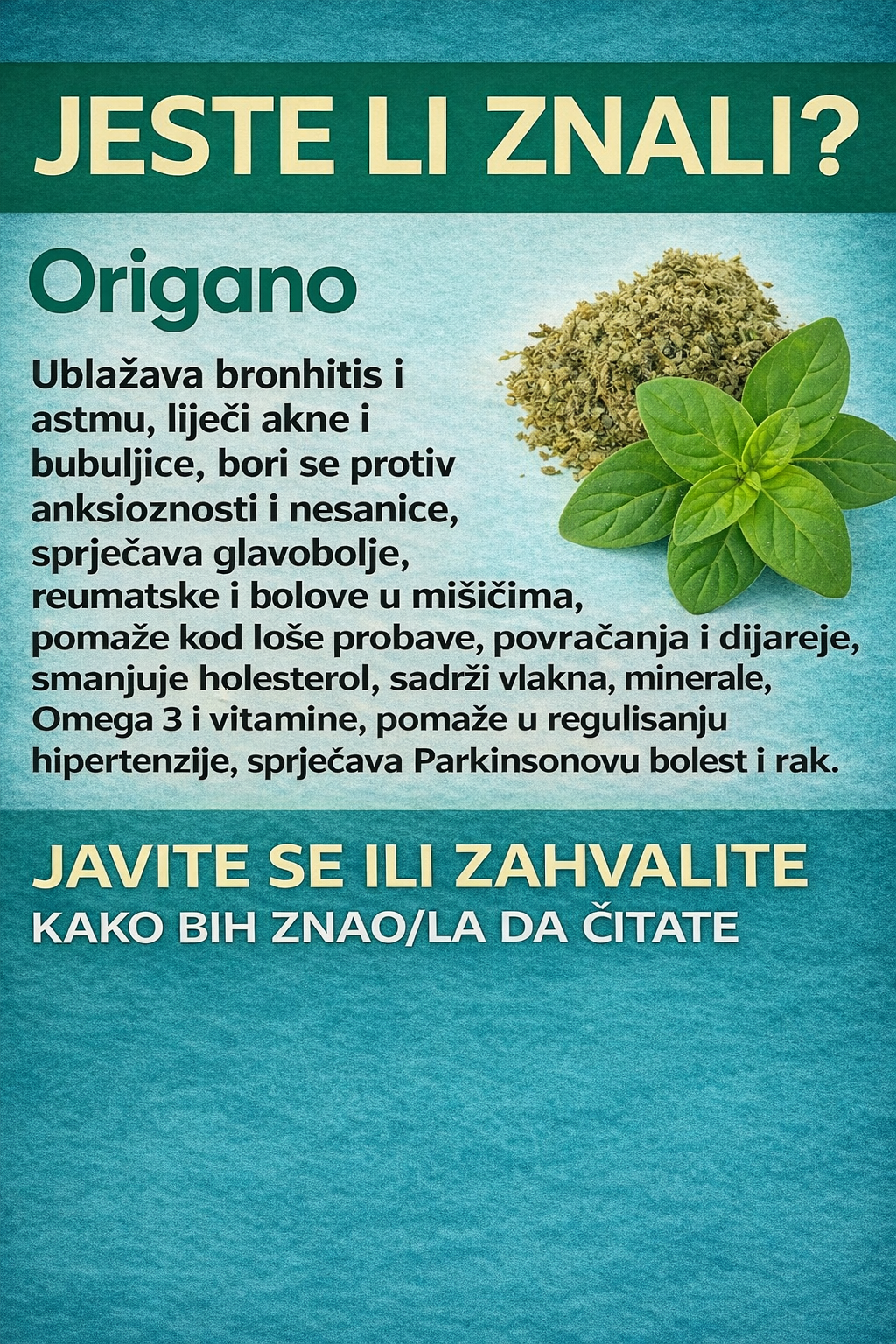 Origano je jednostavan, pristupačan i prirodan dodatak zdravom načinu života. Ključ je u umjerenosti i pravilnoj upotrebi. Kada se koristi pametno, može biti mali, ali vrijedan saveznik u svakodnevnoj rutini.