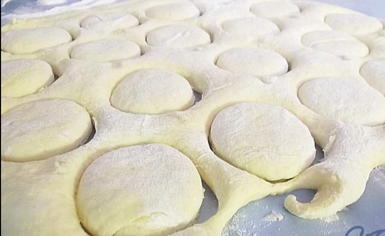 Čašom željene veličine iskružiti krofne. Preostalo tijesto ponovo premijesiti, razviti pa isijeći dok ne potrošite svo tijesto.