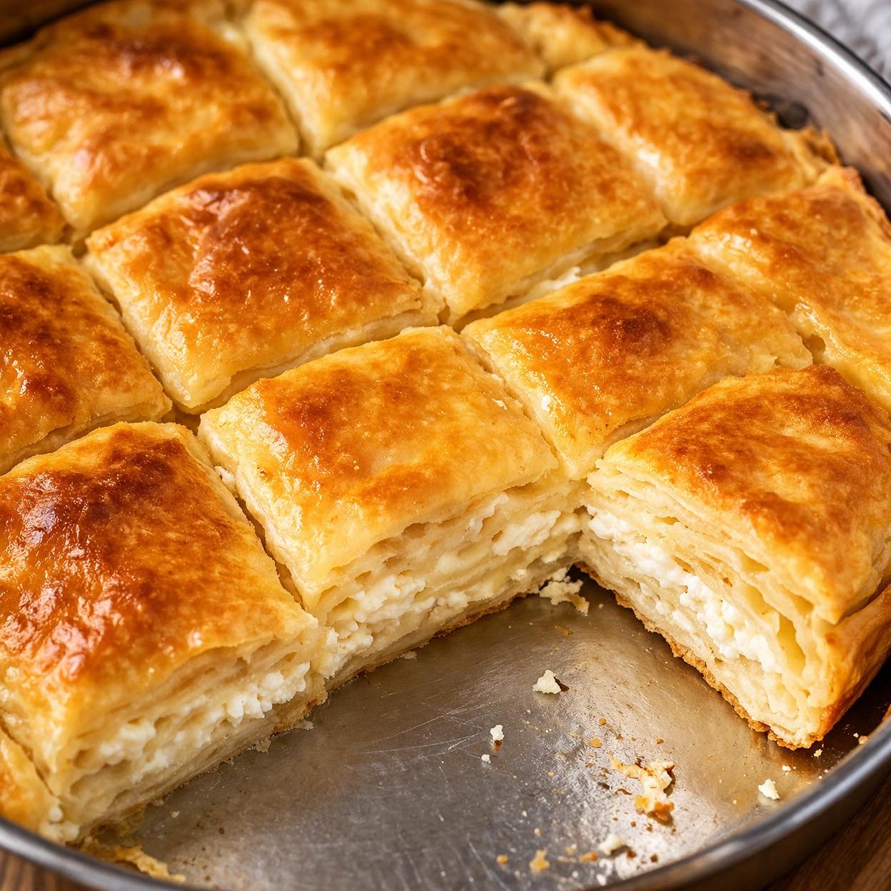 Premažite uljem zadnju koru i isjecite nožem na kocke. Ostavite da stoji dok se rerna zagrije i pecite dok ne porumeni. Recept je sa malo izmjena, ali pita kao pita ispadne savršena i tako mekana.