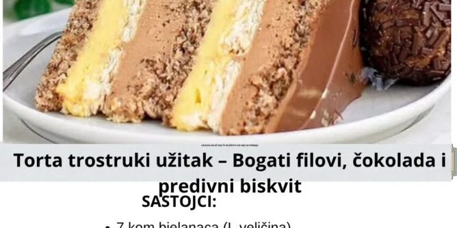 Ovo je najsočnija, najkremastija i najfinija čokoladna torta, zato isprobajte ovaj recept i uživajte u prefinoj čokoladnoj nutella torti! Sastojci: Biskvit:* 5 bjelanjaka 5 žlica šećera 5 žumanjaka 3 žlice glatkog brašna 2 žlice kakaa (gorkog) 1 prašak za pecivo 100 ml ulja * Ovo su sastojci za jedan biskvit, a treba napraviti dva biskvita! Krema: … Read more