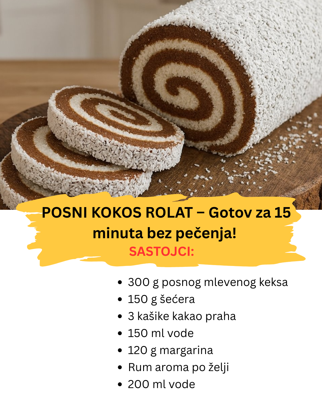 Kokos rolat je jedan od najlepših i najukusnijih kolača bez pečenja – neodoljivo mekan, bogat kokosom i čokoladom, a priprema traje samo nekoliko minuta. Ovaj recept je idealan za posne dane, slave i brza posluženja, jer se pravi od jednostavnih sastojaka i ostaje svež i sočan danima. Ako volite kokos i čokoladni fil, ovaj rolat će vam postati omiljen desert. … Read more