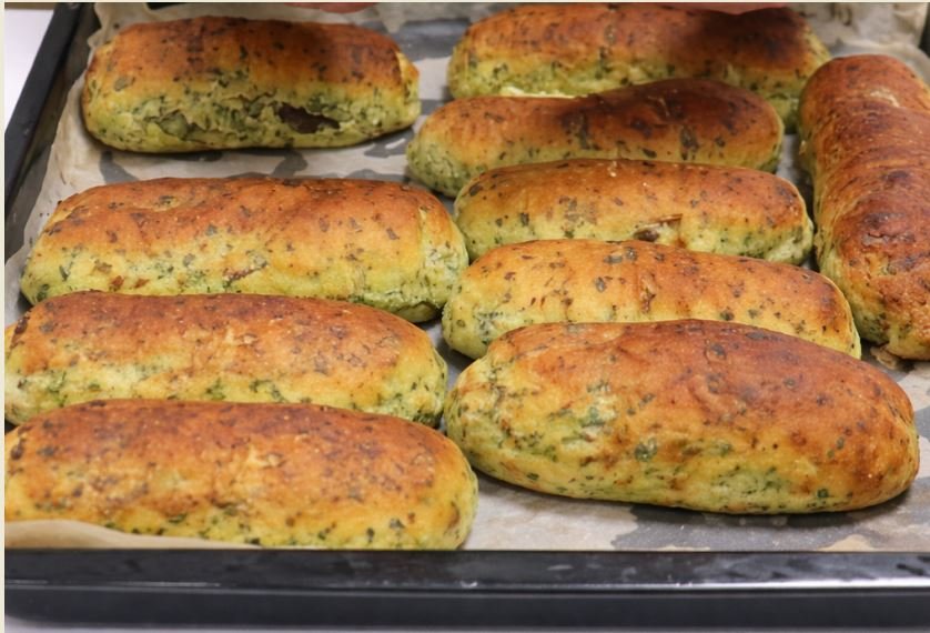 Umesite mekano testo od brašna, kvasca, vode i ulja sa dodatkom spanaća i mladog luka, pripremite fil od šampinjona, sojinih ljuspica i belog luka, oblikujte piroške, pecite ih na 200 stepeni oko 20 do 25 minuta i još vruće premažite uljem.