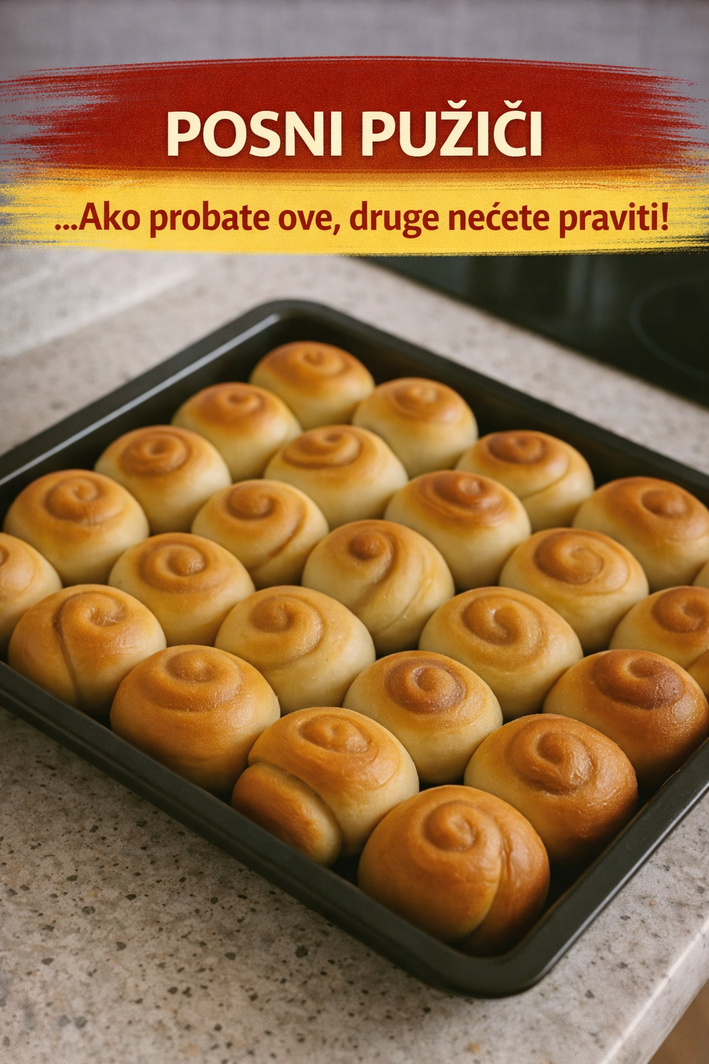 Kada su gotovi, možeš ih lagano premazati sa malo ulja ili zaslađene vode kako bi dobili dodatni sjaj i mekoću. Rezultat su savršeno mekani, vazdušasti pužići koji se listaju i tope u ustima – idealni uz kafu, čaj ili kao brz posni doručak.