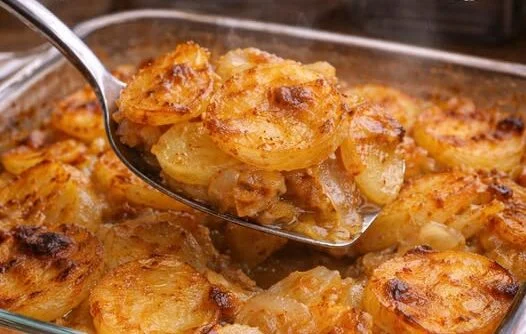Servirajte toplo, direktno iz vatrostalne posude. Krompir je mekan i sočan iznutra, a spolja blago hrskav, dok luk daje posebnu slatkastu aromu – savršen posni ručak koji se pravi od osnovnih sastojaka, a osvaja sve!