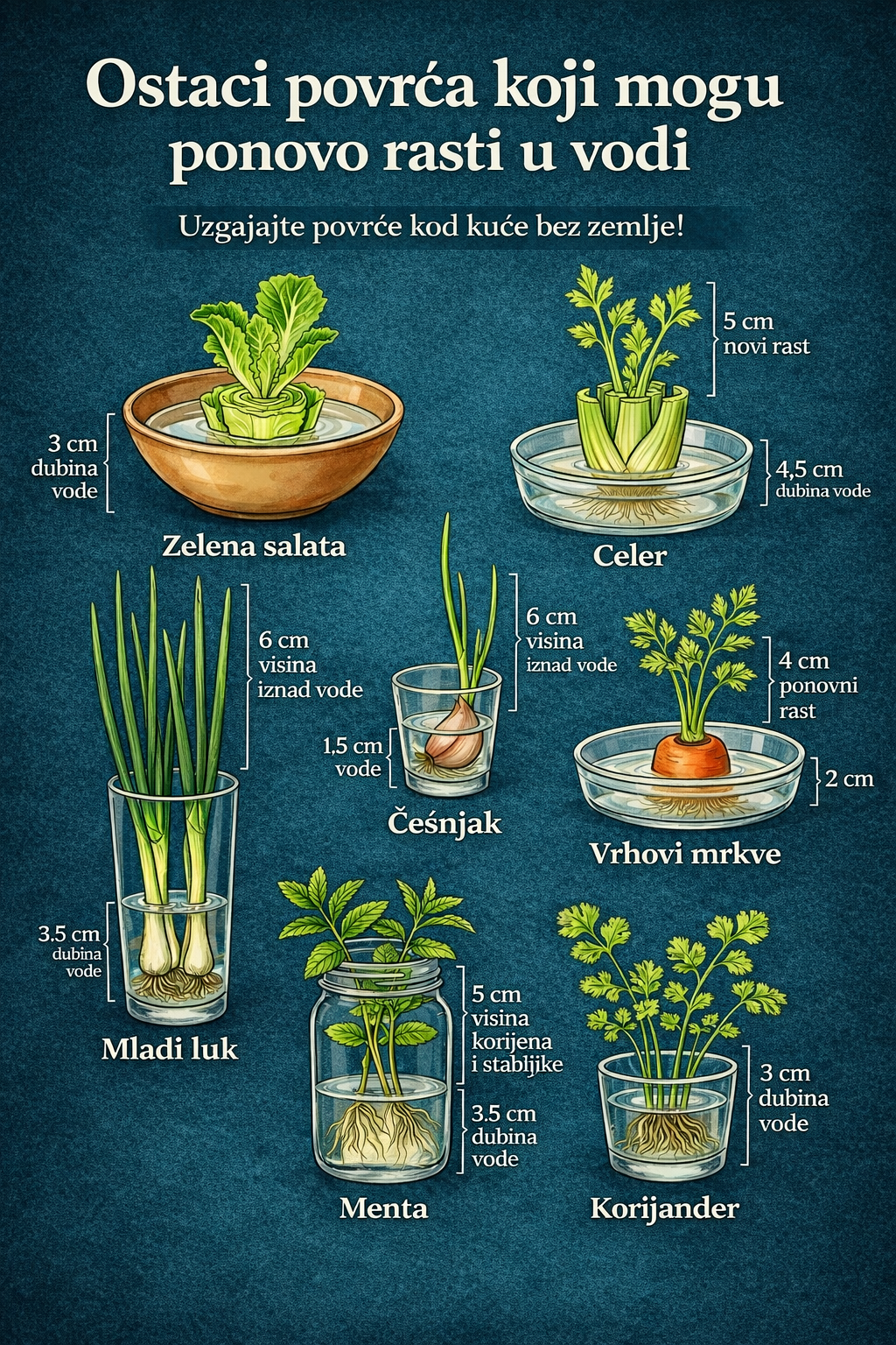 Prije nego što bacite ostatke povrća u smeće, provjerite šta je ostalo na dasci za rezanje. Baza glavice salate, donji dio svežnja celera i korijen mladog luka mogu ponovo izrasti u čaši vode i dati vam besplatnu hranu sedmicama.