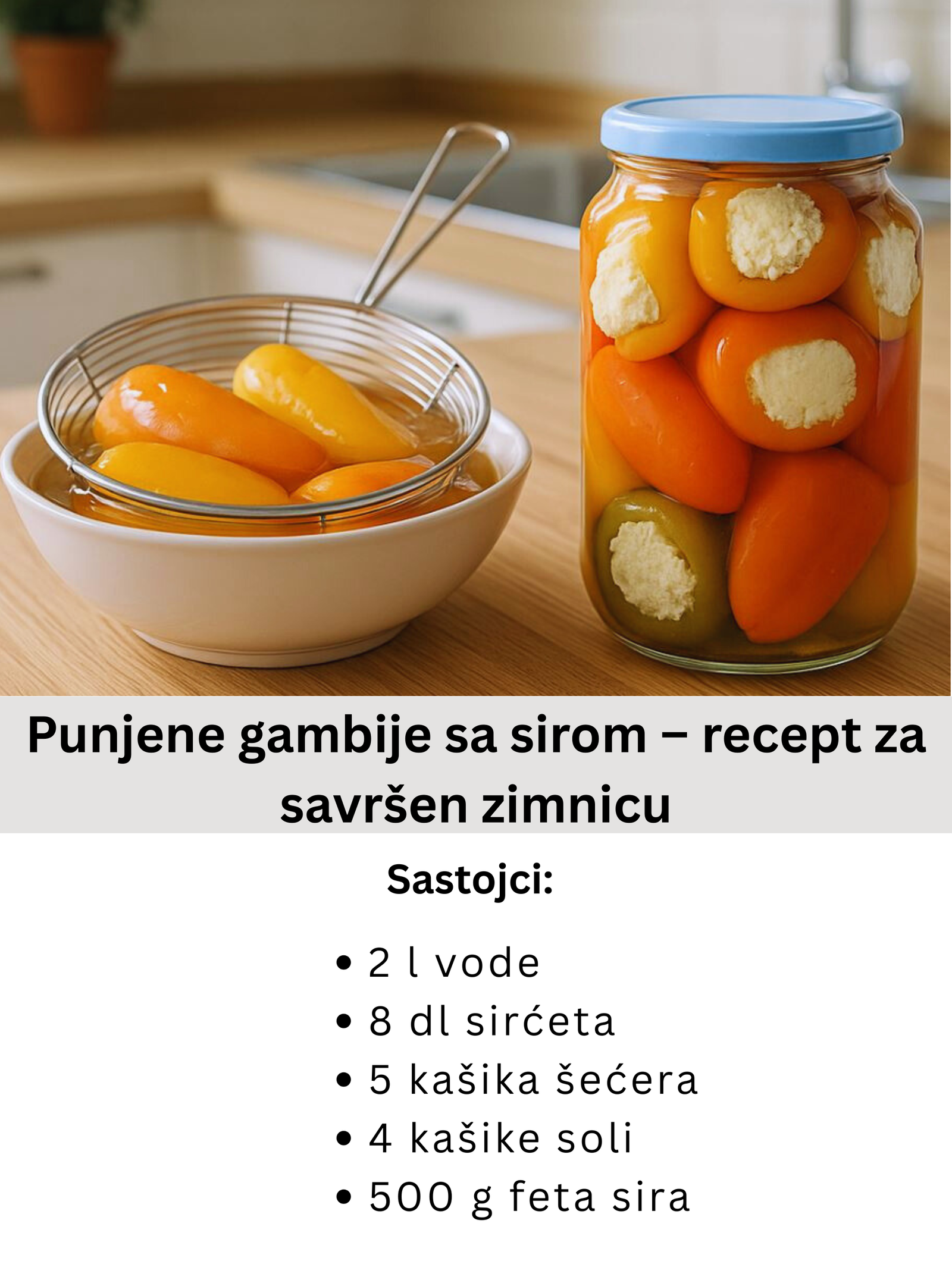 Napuni svaku papriku pripremljenim sirom.Pravljenje rastvora (presolca):