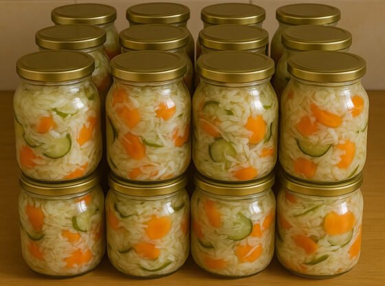 Ako želite da vaša zimnica bude bogata bojama, ukusima i mirisima, onda je šarena salata pravi izbor. Ova kombinacija kupusa, paprika, krastavaca i šargarepe daje savršen balans svežine i hrskavosti, a uz dodatak sirćeta, šećera i vinobrana dobijate trajnu i ukusnu salatu koju možete čuvati tokom cele zime.